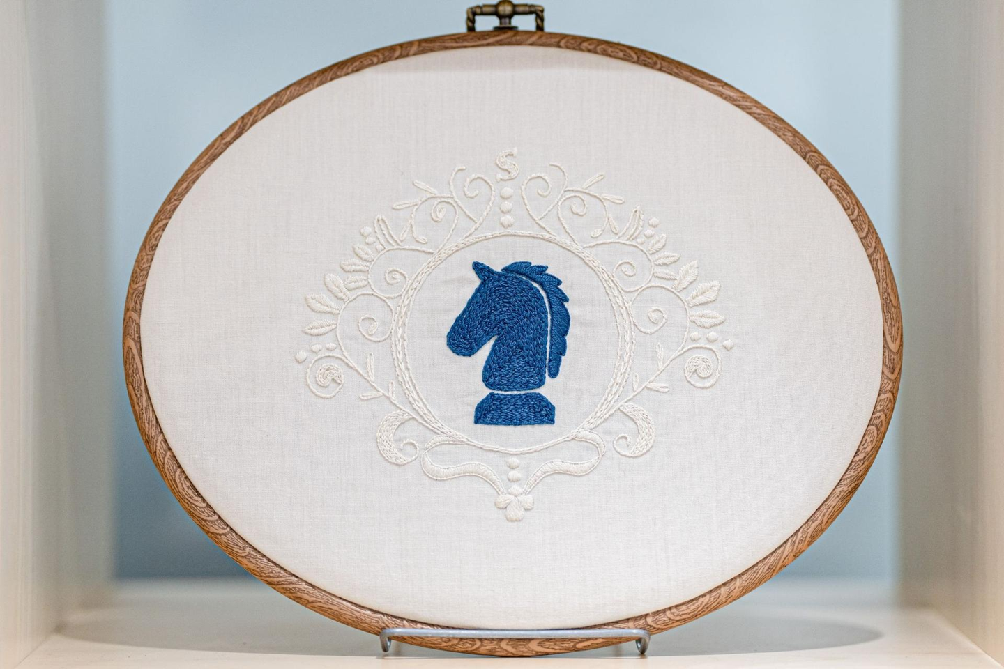 本棚にはフェンリルのメンバーが制作した刺繍作品を飾っています。