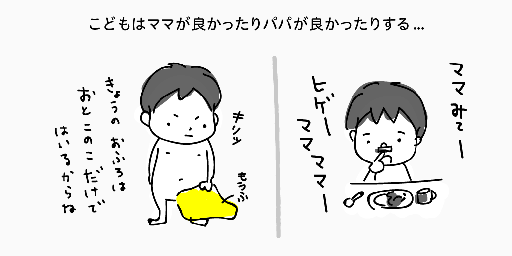 子どもはその時々でパパがよかったりママがよかったりするので、そこは子どもの気分に合わせます。その時家事は子どもの相手をしていない方がやります。