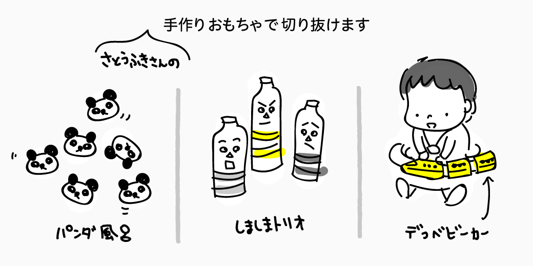 何よりも佐藤 蕗さんの著書にあった、困難がおこった時「どんなおもちゃを作って解決しようか」と発想を転換させるという考え方が、イヤイヤ期を切り抜けるモチベーションになりました。