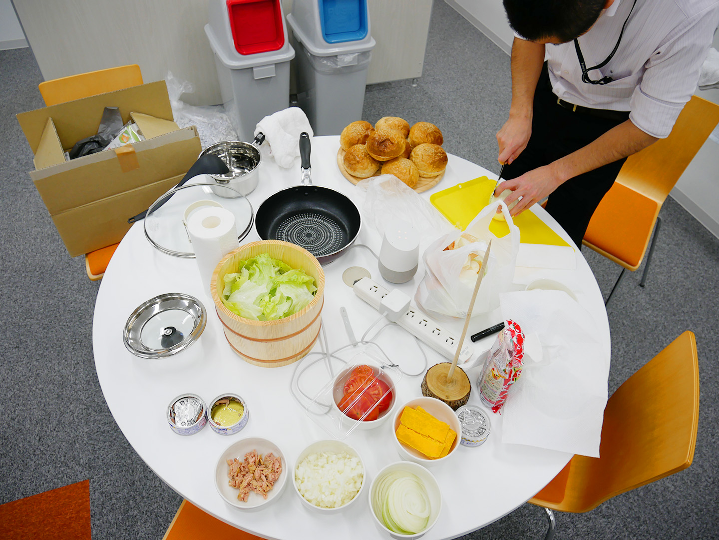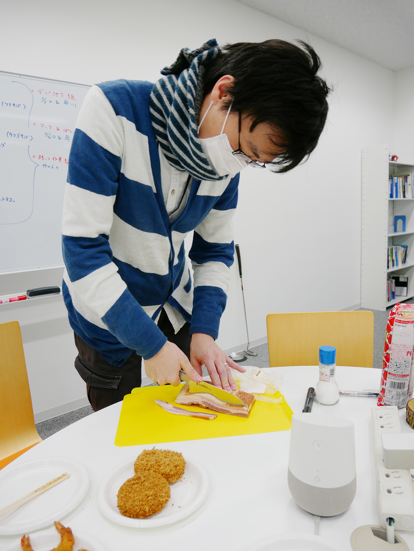 普段から料理をしているスタッフがいろいろと教えたりする場面や、部長がたまねぎを丁寧に切る姿など、普段ではみられない光景がありました。