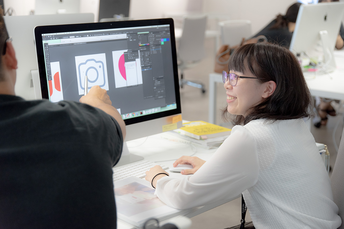 フェンリルでは2ヶ月半のデザイナー新卒研修をみっちり行い、その後は先輩のサポートをしながら徐々に仕事に慣れていきます。実際の業務をスムーズにこなせるように、
