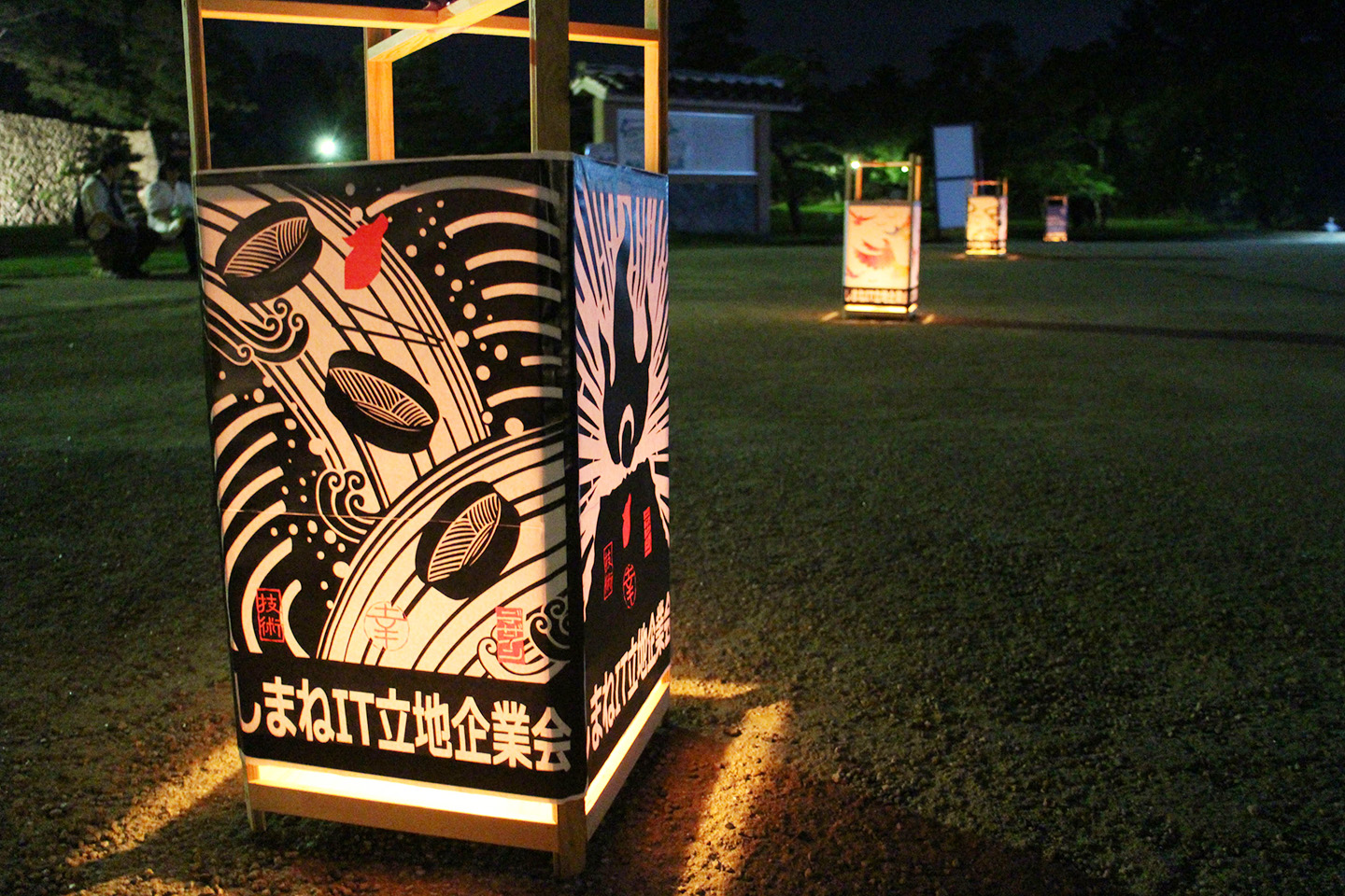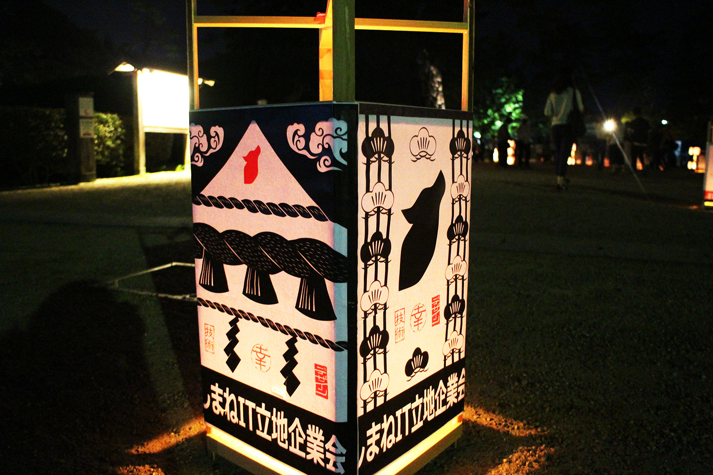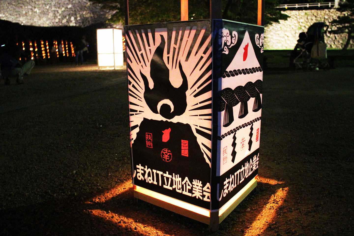 はい、そんな超ド級城ライトアップイベント松江水燈路は毎年大盛況のイベントでもあり、なんと今年で16回目!フェンリル島根オフィスも5年目となったこの年に、しまねIT立地企業会さまより松江水燈路協賛のお声がけをいただきました。