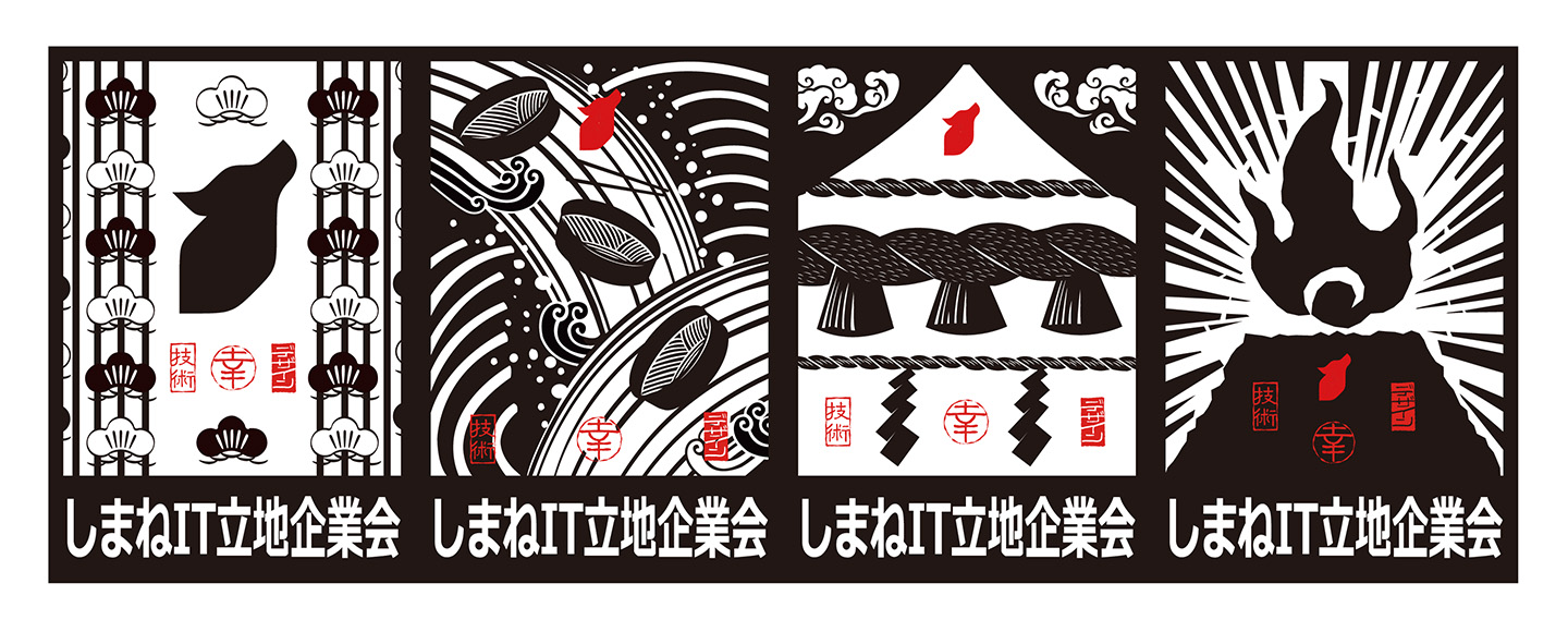 切り絵モチーフということもありどこか「和」を感じさせるこのデザインは、今までにありそうでなかった「フェンリルらしさ」が伝わってきます。島根の歴史に強く結びつく「出雲蕎麦」や「たたら製鉄」を違和感なく行灯に溶け込ませていますね。っていうか思わずお蕎麦食べたくなっちゃいますね。落款モチーフのフェンリルくんも力強くていい感じ!
