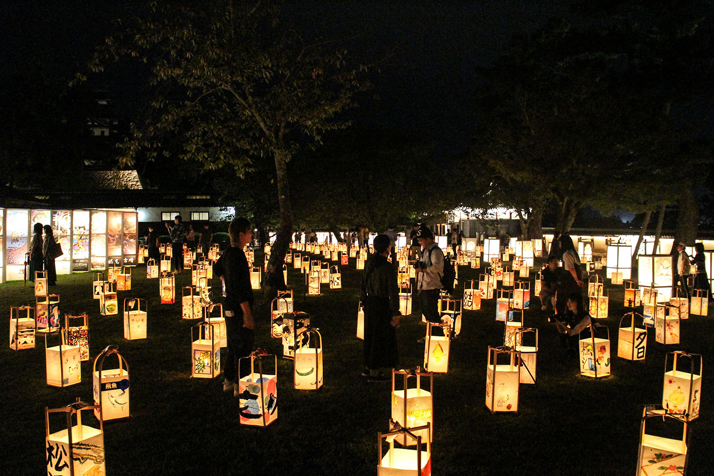 城内二の丸に広がるのは、やさしい光を放つ手作り行燈の数々。