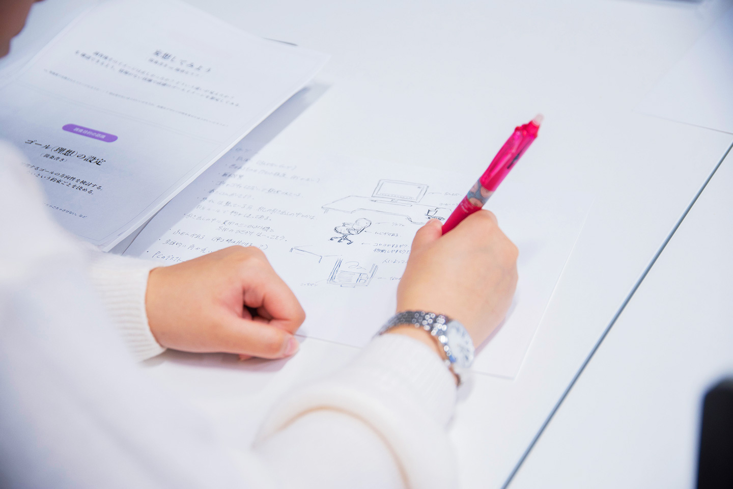先輩たちが働くオフィスのデスク周り(机・椅子・キャビネットまで)をより働きやすく、フェンリルのデザイナーらしいデスクセットにするにはどういった案が適切か?ということをテーマに、各々提案をしてもらいます。