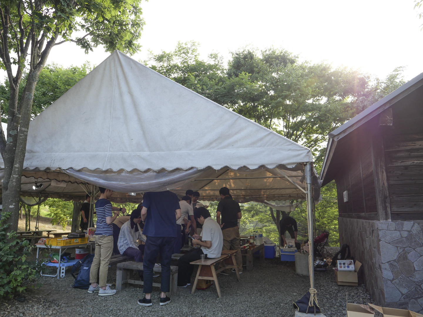 支社があるのは島根県松江市の中心部ですが、そこから車でわずか3~40分程度のところにキャンプ施設があります。今回はそちらの施設の1スペースをお借りしてBBQをしました。