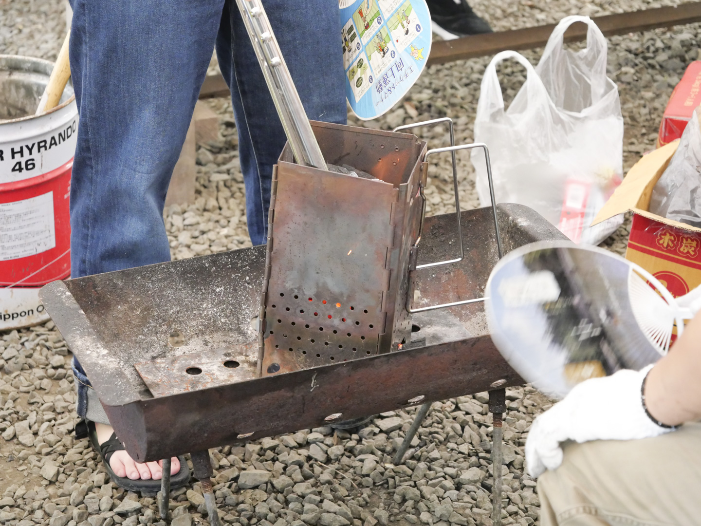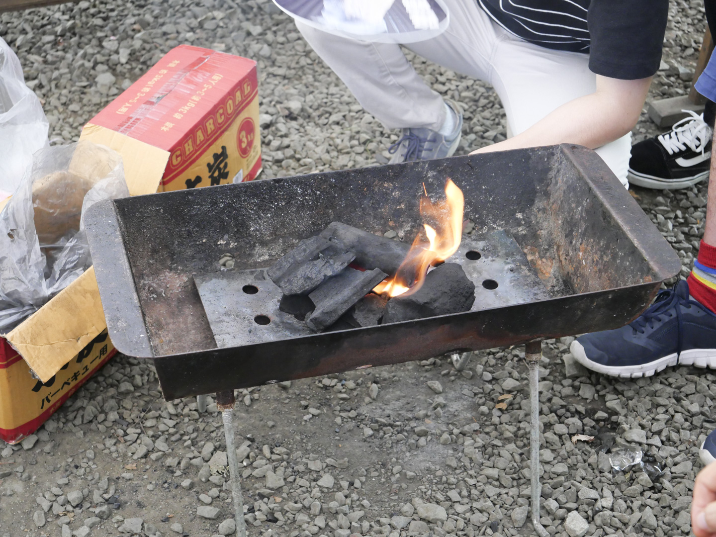 火起こし器を自宅から持ってきたBBQ好きのメンバーも。