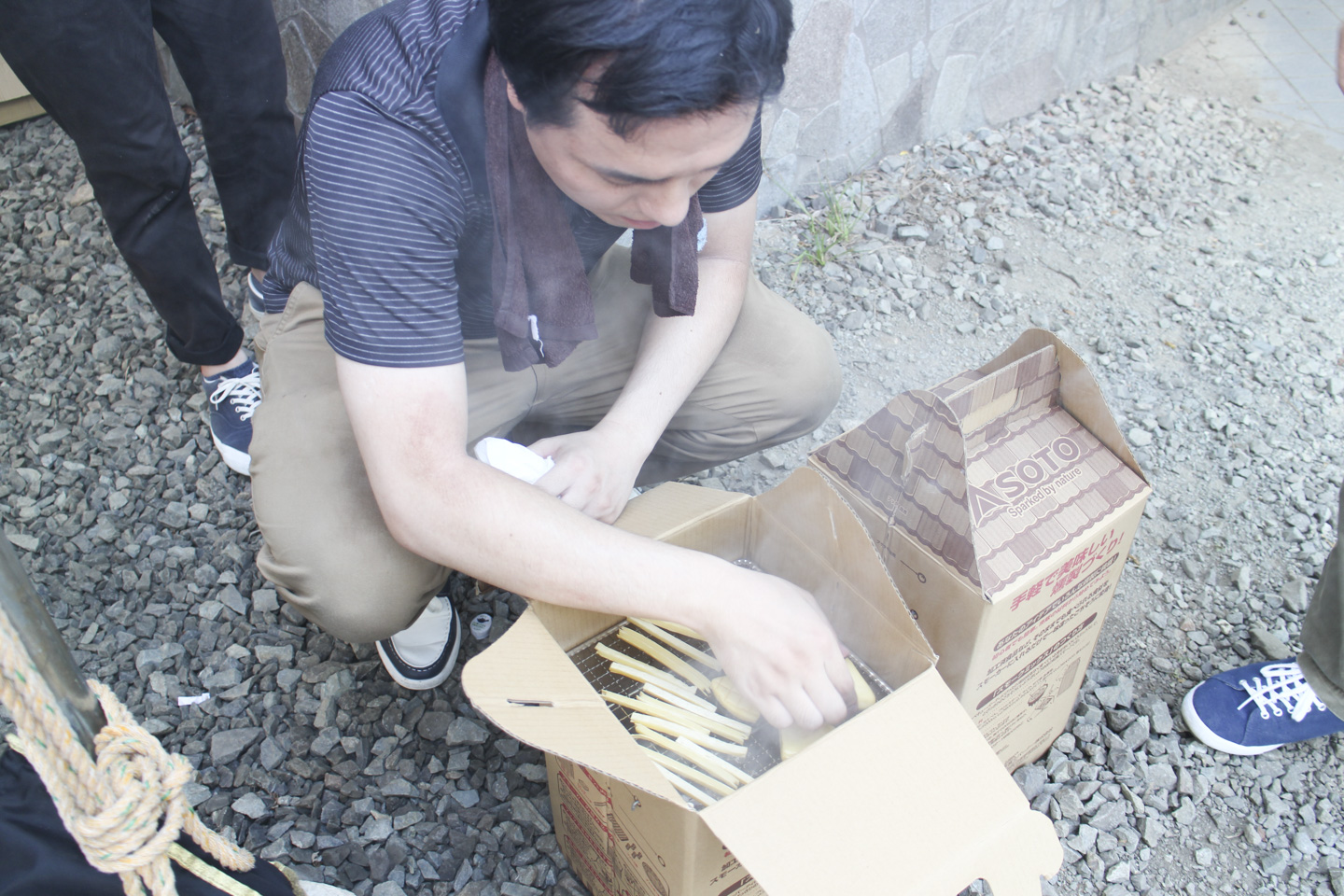 最近燻製にハマっているメンバーが持ってきた「ダンボール燻製器」で燻製にもチャレンジしました!