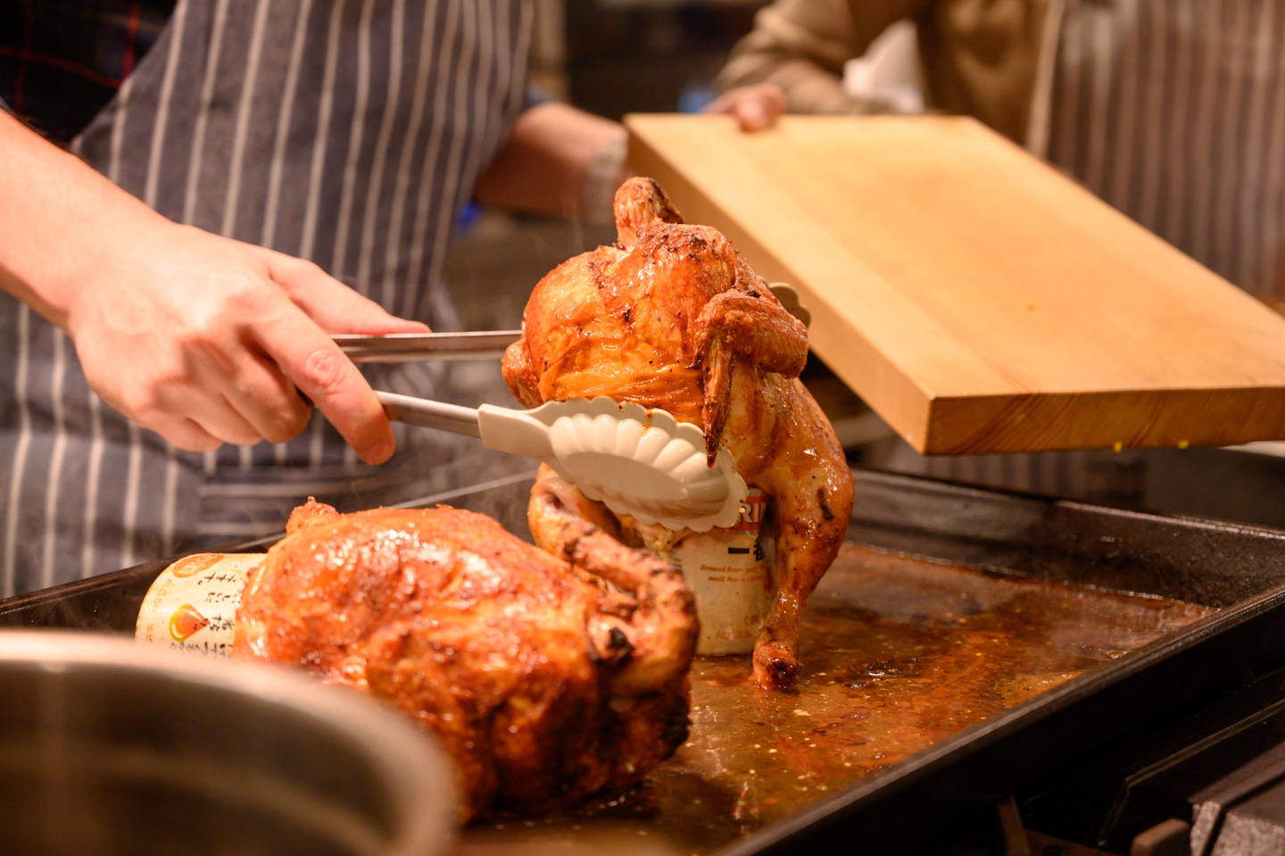 (丸鷄のグリルの写真。丸焼きにするならひな鳥がいいと鶏肉専門店で教わりました)