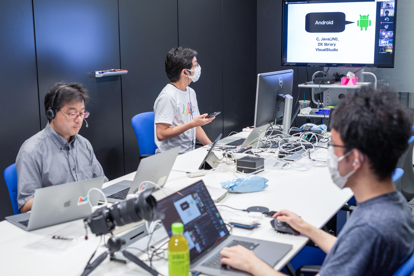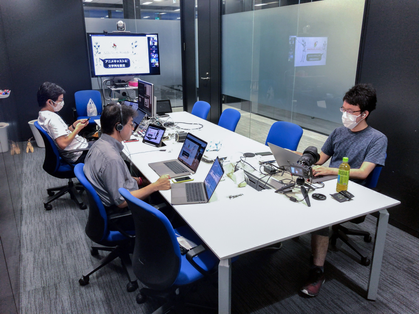 当日は明確なタスクを振り分けて実施 普段は運営メンバーも各自の自宅で仕事をしています。しかし今回は初めての取り組みであり、メンバー間の連携をスムーズに行う必要があります。そこで、運営メンバーのうち3名がフェンリルのオフィスに集まって配信を行いました。