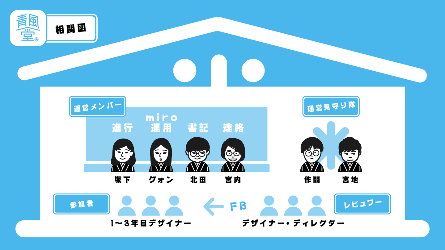 青風堂は、参加者、レビュワー、運営見守り隊で構成され、全体でおよそ30名のデザイナーが、業務の合間を縫って参加しています。