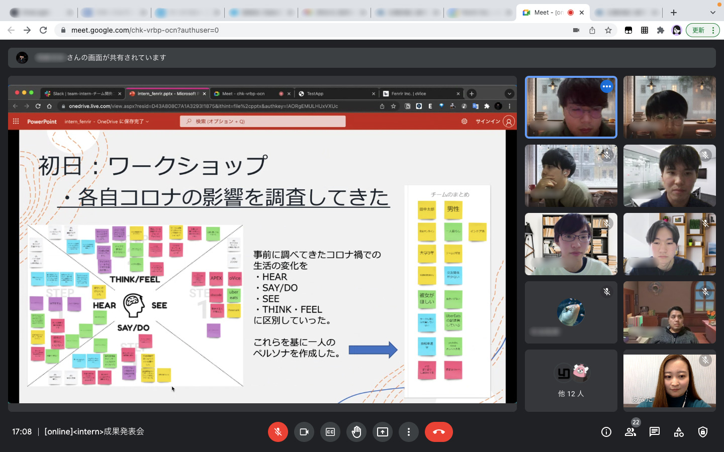 当初フェンリルの新たな働き方であるハイブリッドワークを体験いただく予定でしたが、新型コロナウイルス感染症拡大の状況から、完全オンライン型へ直前で変更することとなりました。オンラインであってもオフラインと同等のコミュニケーションがとれるように、Web会議システムやバーチャルオフィスを活用しました。