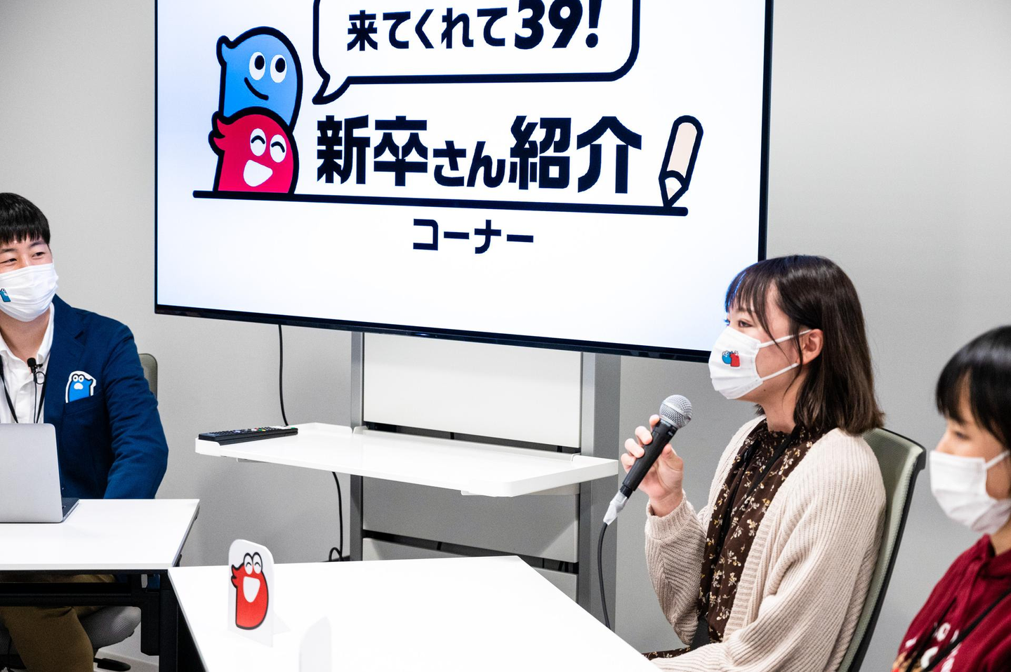 また、Day1後半では4月に入社された新卒4名の紹介コーナー「来てくれて39!新卒さん紹介コーナー」を放送。