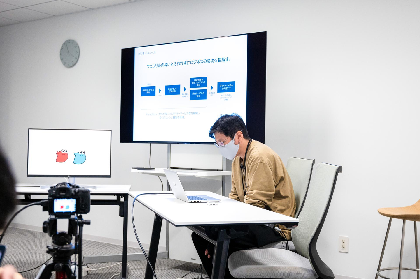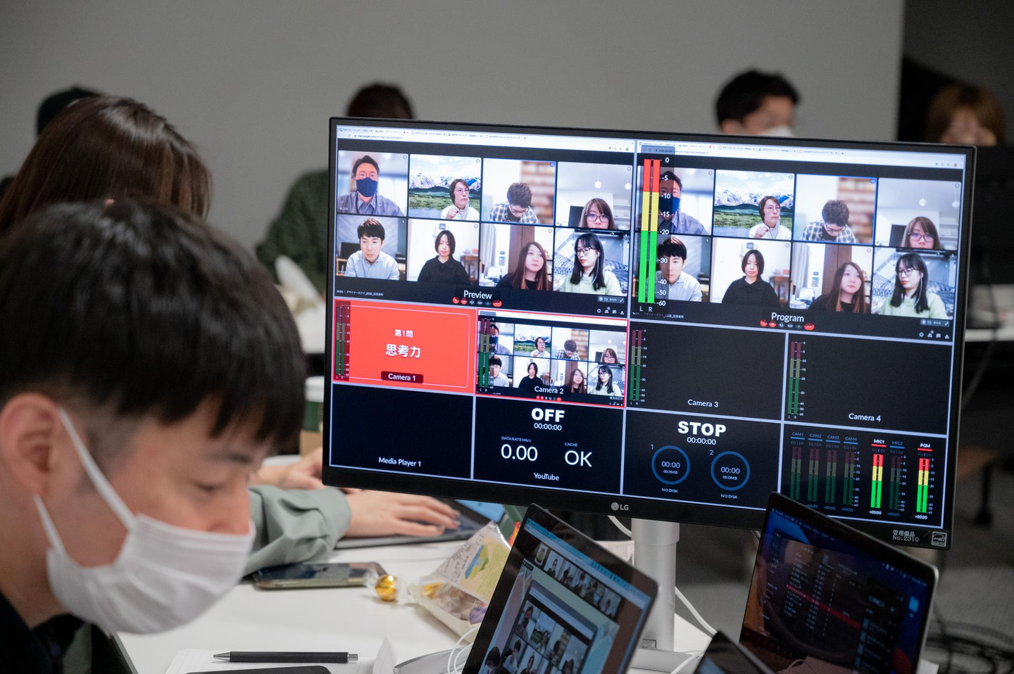 DDテレビでは「テレビ」らしさを演出するため、会議室をスタジオのようにセッティングして配信を行いました。