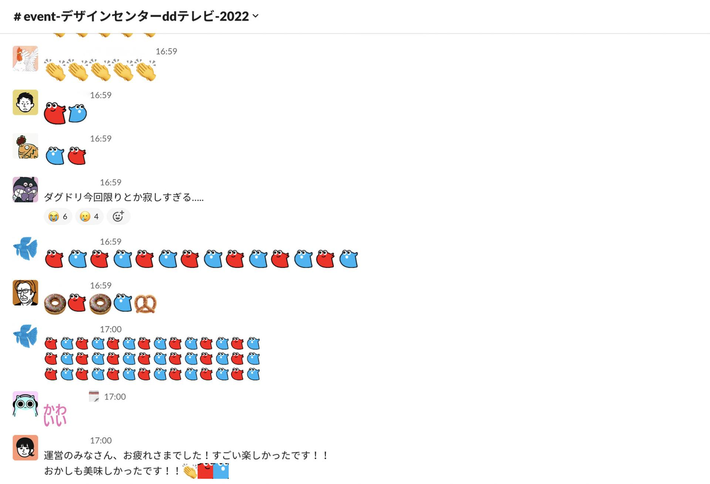 当日は社内チャットツールslackにDDテレビの専用チャンネルを開設。