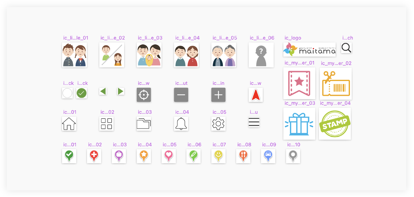 アセットを書き出すと、サイズが1px大きい・透過されていない/されている・アセットの重複・命名規則が統一されていない・解像度違いなど、時折データの不備があります。研修でも、データ名に誤字がありました。