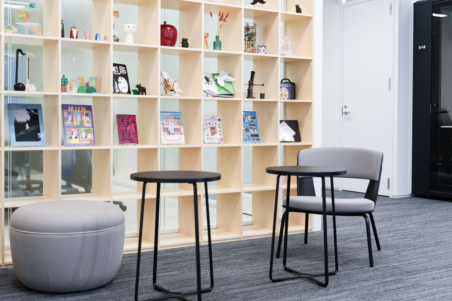 本棚には、フェンリルのメンバーが制作した作品や写真などを展示しています。これは拠点を越えてコミュニケーションを深めることを目的とした「Fenrir Art」というプロジェクトによるもの。展示物は定期的に各オフィスを巡回します。