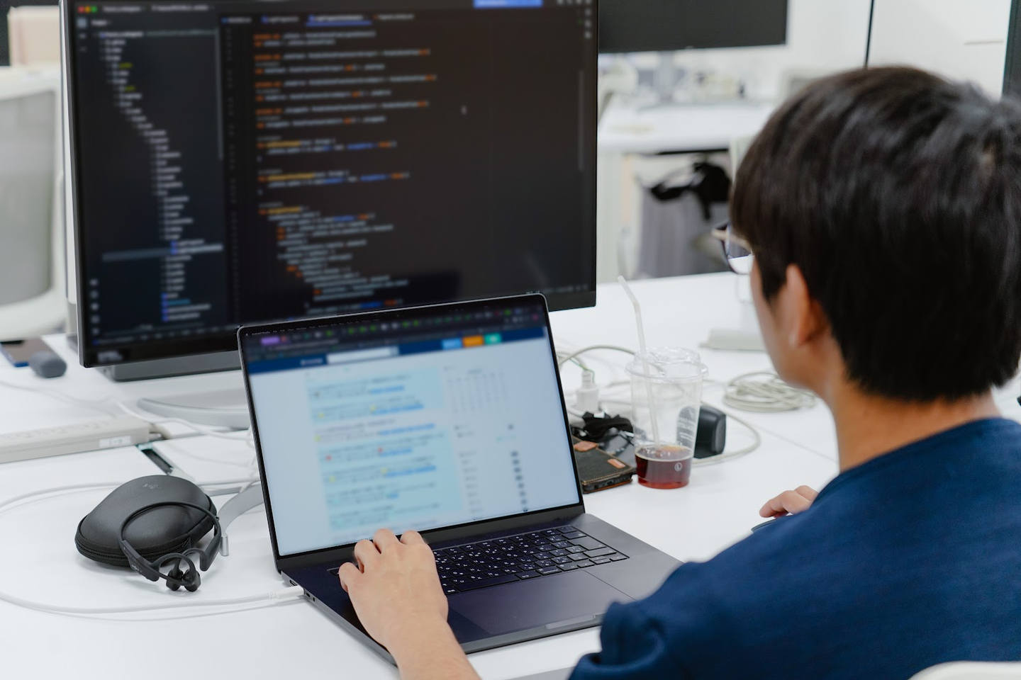 ジョン:チームで働くことに慣れてきたと思います。研修中の開発は基本的に一人でやることが多かったのですが、コードレビューや質問など、自分が書いたコードを共有し、意見を交わしながらより良いものにしていくというプロセスを経験し、技術力と共にコミュニケーションスキルが向上したと思います。