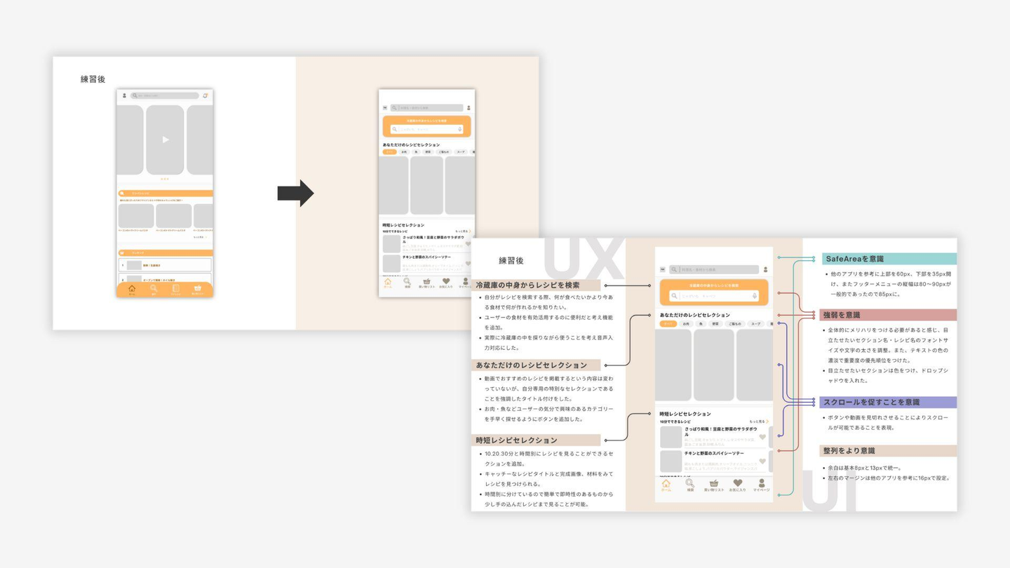 そこから毎日、普段よく使うアプリをトレースしてアプリデザインについて勉強し身につけた知識を使ってもう一度同じテーマで制作。