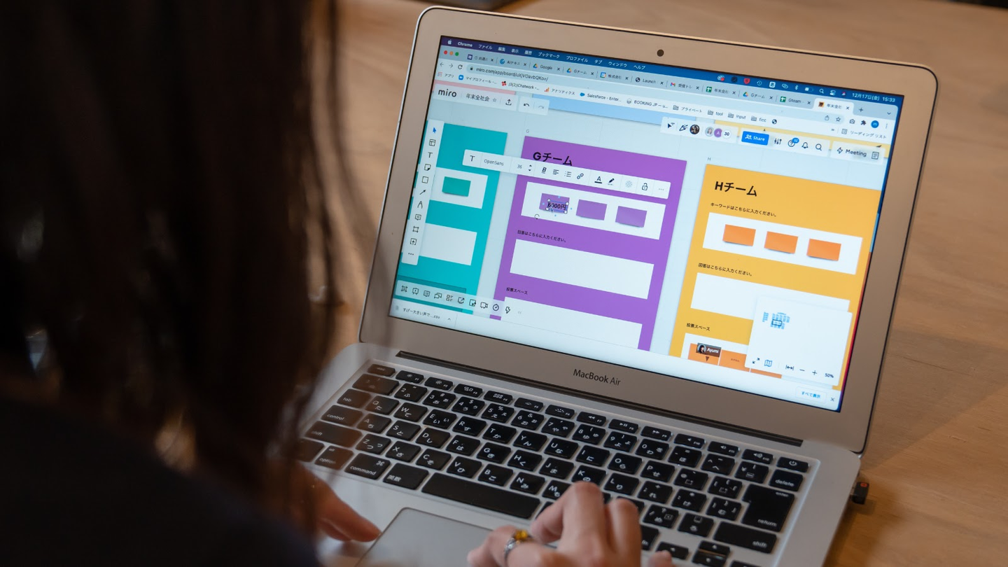 普段のクリエイティブ案件で、コピーやストーリー作成のような言葉に携わることの多い現場メンバーたち。それもあってか、話し合いをする中でスラスラとストーリーへと繋がっていきます。短文でまとめるチーム、情景が思い浮かぶような文章を展開するチーム等、多種多様なストーリーがmiroに並べられます。最後は、全てのチームのストーリーを見て、「これがいい!」と思ったものに個々人が投票をしました。投票されていく様子を見ながら、「このチームさすがだよね」「こうすればよかった」「うちのチームがやっぱり一番!」とさまざまな声が聞こえてきました。時にはチームを超えた会話も飛び交っていました。