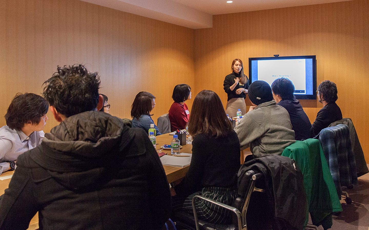 初回のテーマは「ブランドストーリー」で、ブランドのことをターゲットに好きになってもらうために、ブランドとターゲットを繋ぐストーリーをどのように導き出すのか。導き出したブランドストーリーをどのようにターゲットへと伝えていくのかを実際の事例を交えてレクチャーし、最後にはワークショップを行いました。