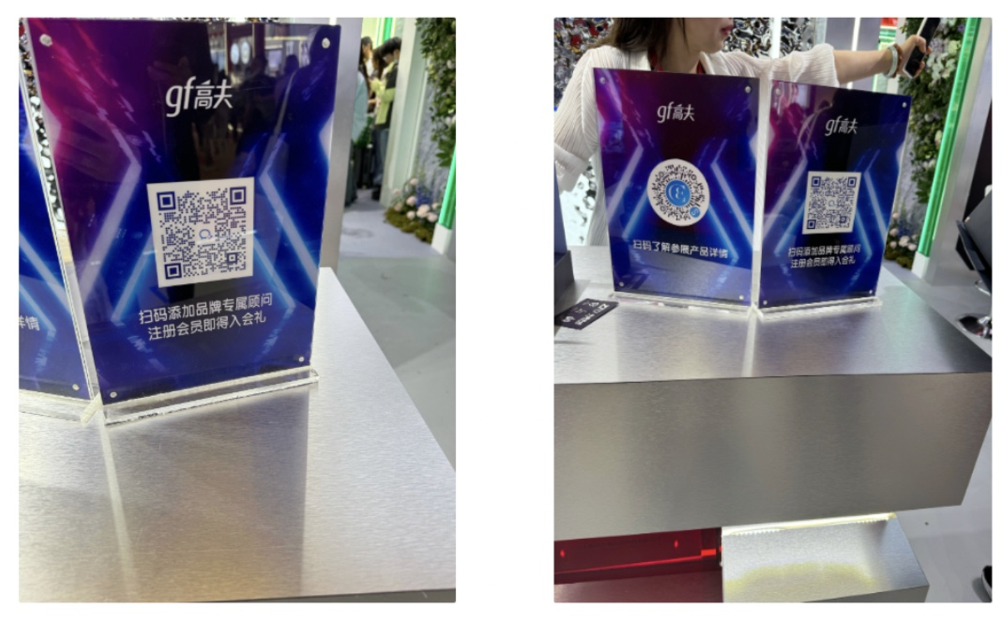 各ブースに担当者(商品開発、広報など)のWeChatのQRコードがあり、そこからコンタクトを直接取れるようになっています!