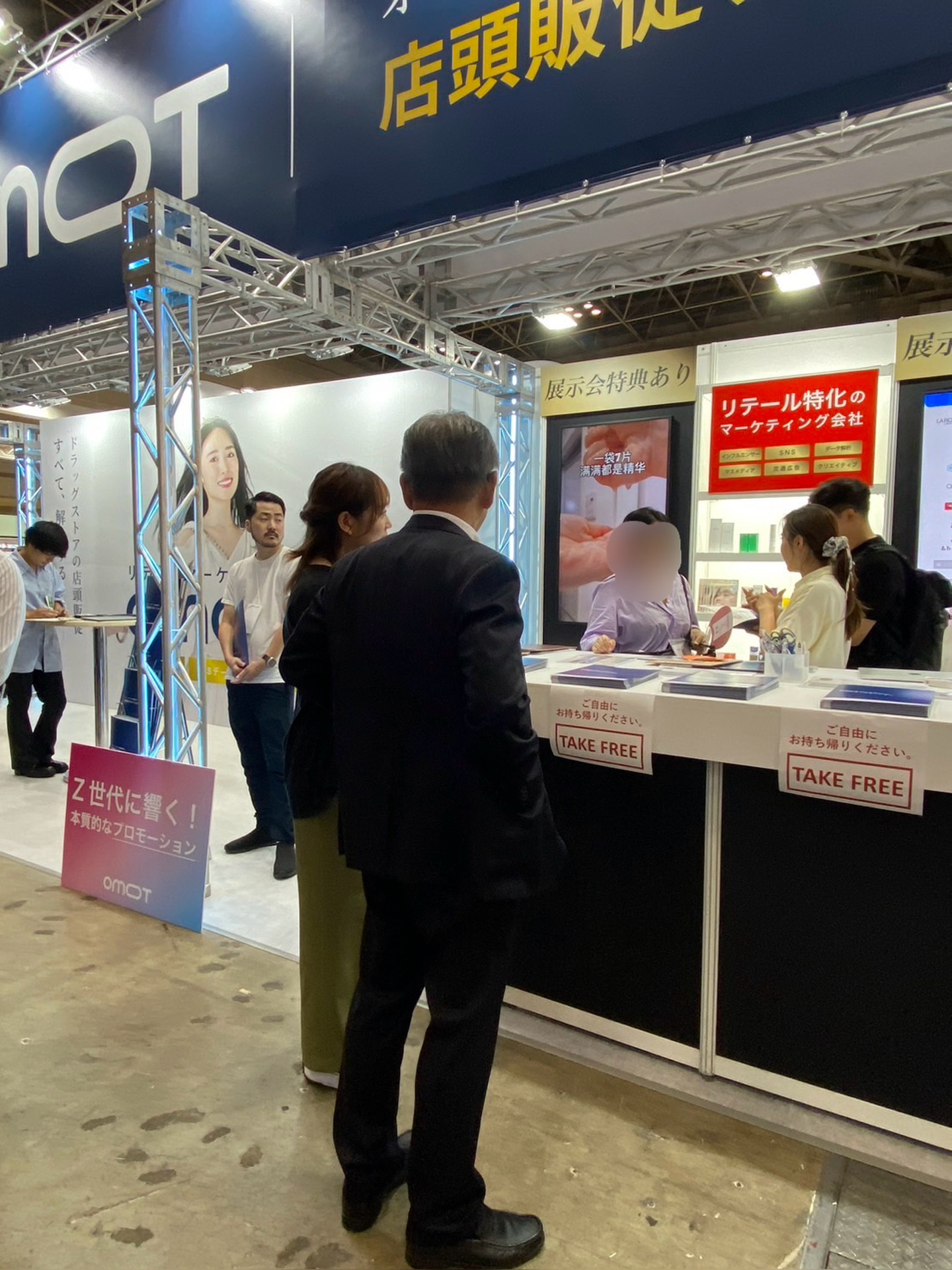 ドラッグストアショーでは、主にセールスメンバーが中心となり、OMOTで支援できるクライアント様の新規発掘を目的に名刺交換やアポイントへと繋げます。