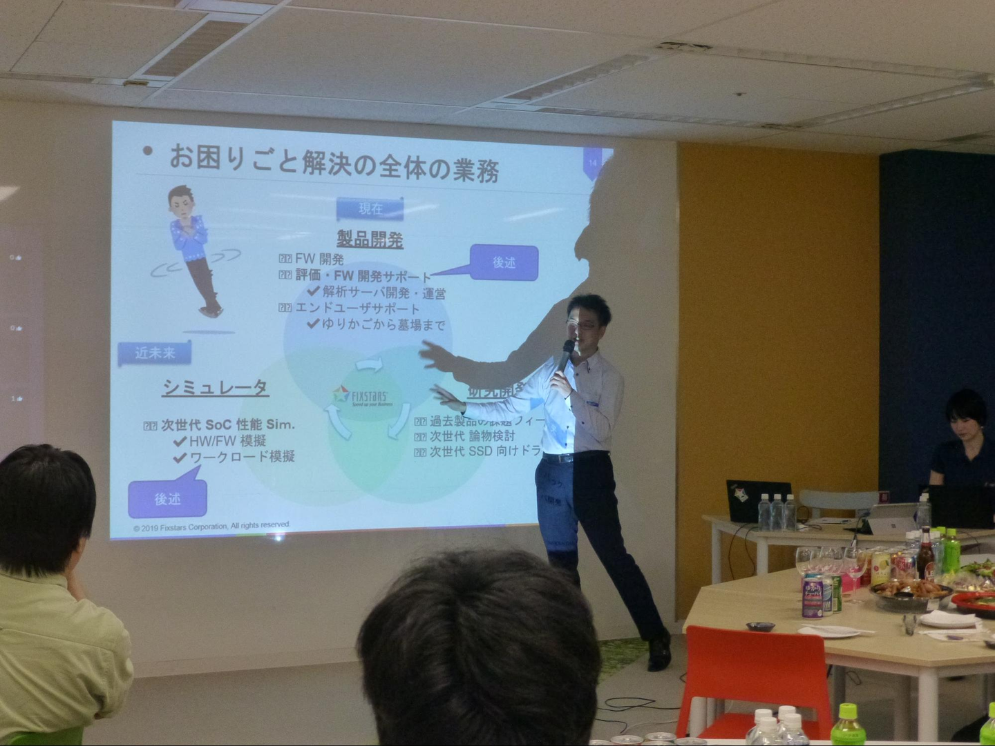 フィックスターズでのメモリ事業部の歴史から、具体的な業務内容、職場環境などなど、楽しく面白くお話いただきました。