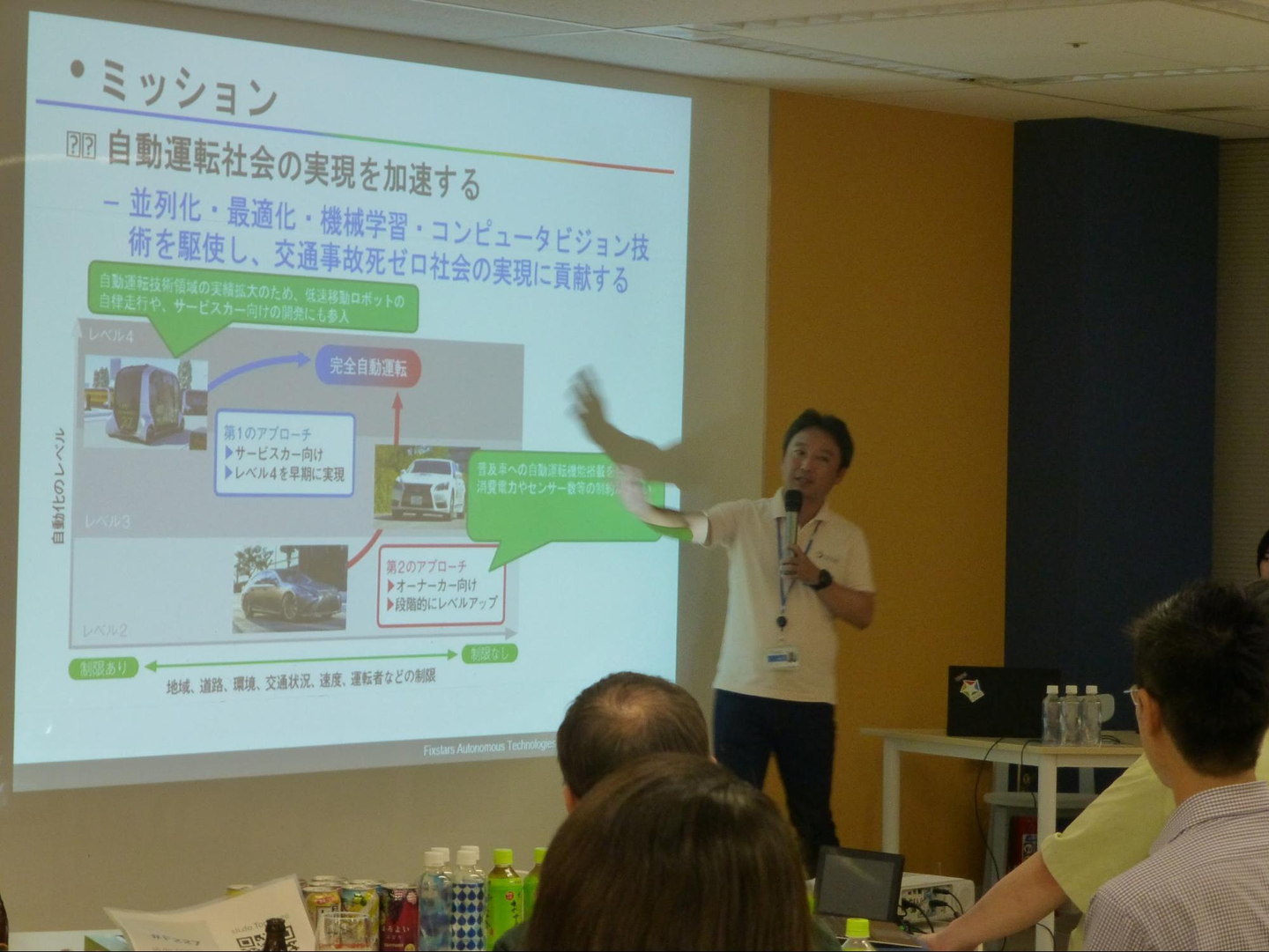 内容としては「自動運転社会の実現に向けてFixstars Autonomous Technologiesが取り組んでいる技術領域 (コンピュータによる高速な認知と判断) 」についてお話いただきました。