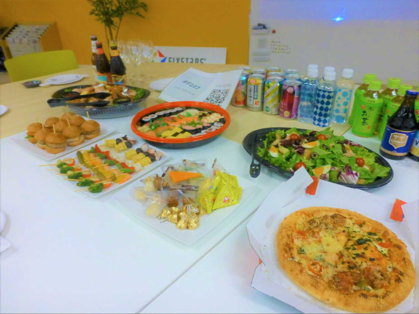 そんなニーズに応えて、フィックスターズを知ってもらおう!ということで、【Fixstars Open House vol.1】を開催することになりました。ニーズに応えるために、コンテンツを練りに練って実施しました。そんなコンテンツをお話する前に、、、映えな軽食とお酒をご覧いただきたいです!自慢したい