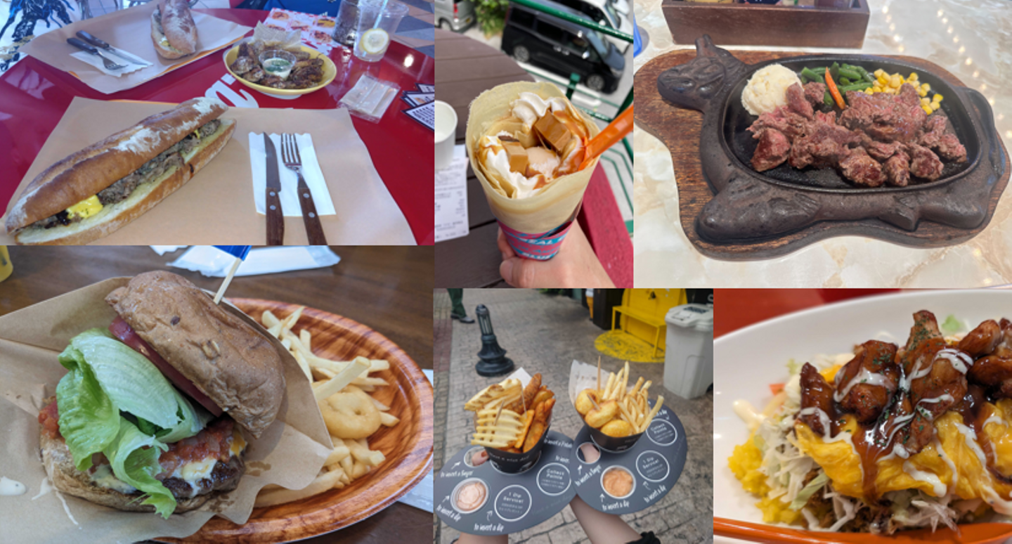 到着日は那覇空港からバスでアメリカンビレッジに移動し、それぞれ自由行動で昼食タイム。皆さんおいしそうなものを食べられていたようです🍔