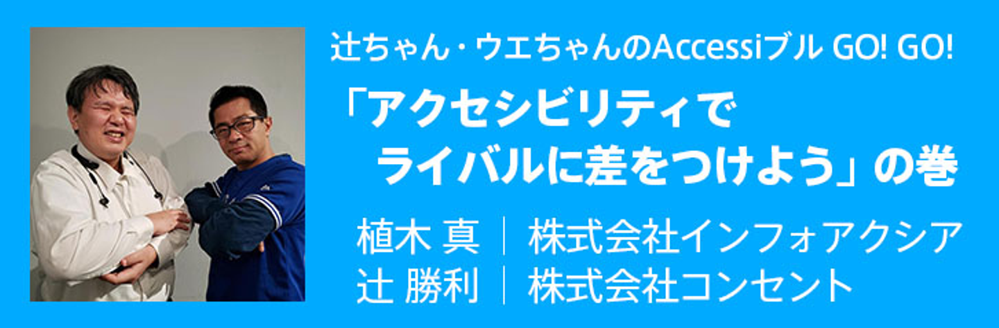 そこで、2019年の一年間にウエちゃんが実際に診断した合計500ページ以上のウェブサイトから見つかったアクセシビリティの問題点を集計してランキングを作成。このセッションでは、そもそも「アクセシビリティ」とは何か? そして、ランキングのTOP10を紹介しながら、スクリーンリーダーのユーザーでもある辻ちゃんによるデモを交えて、ライバルに差をつけるウェブコンテンツ制作のTIPSを分かりやすく楽しく解説します。