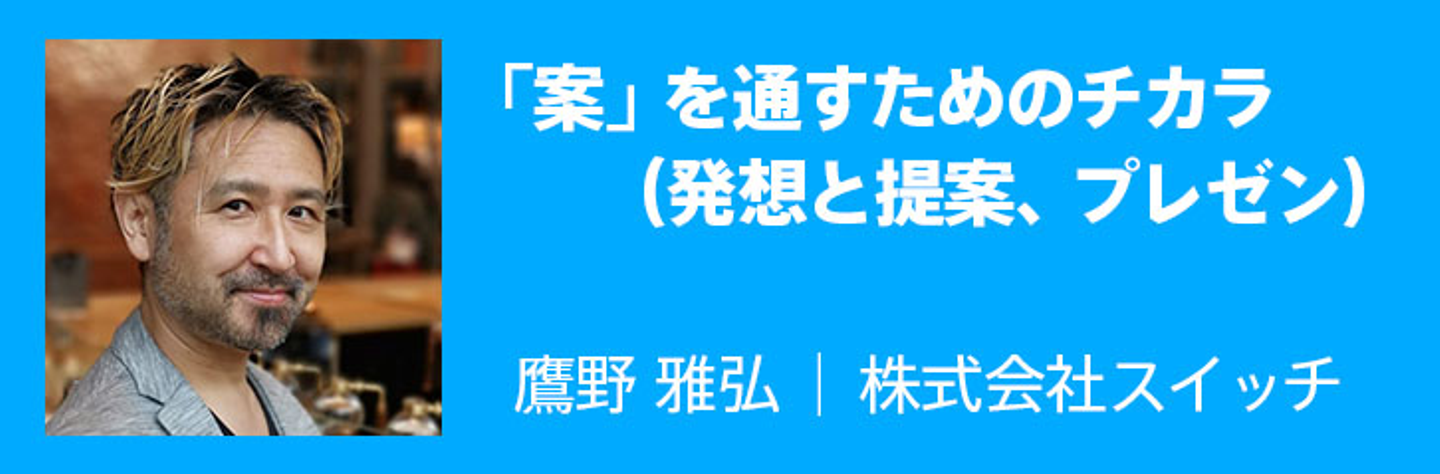 このセッションでは、発想や提案、プレゼンなど、「案」を練り、通すチカラについて考えます。
