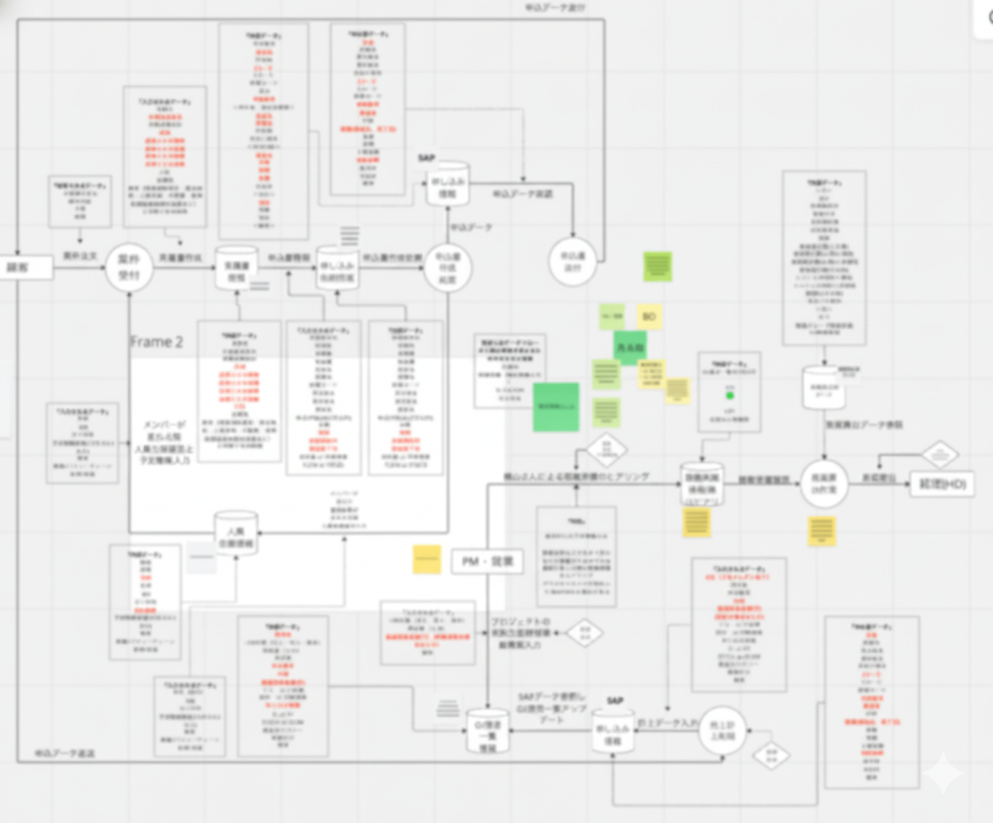 まず取り掛かったのが、社内の業務の全体像の整理と把握です。