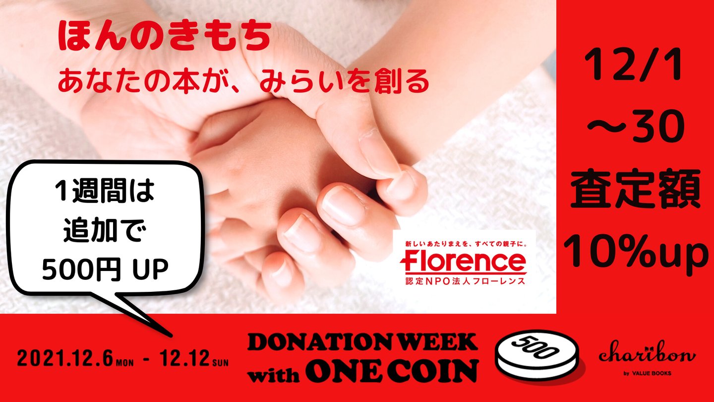また、12月中のフローレンスへの寄付であれば買取価格が10%アップになるキャンペーンを実施中。12月12日まではさらに500円上乗せキャンペーンも行っています。チャリボンを体験するには今が絶好のタイミングです!