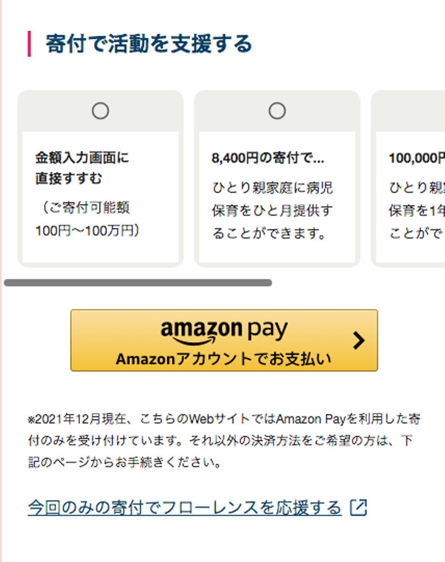 フローレンスでは2017年からAmazon Payで決済できる寄付をスタートさせており、敷居が高いと思われがちな寄付を簡単にできる仕組みを整えています。そして、このたびさらに手軽に寄付できるサービス「オトナリ」をリリースしました!