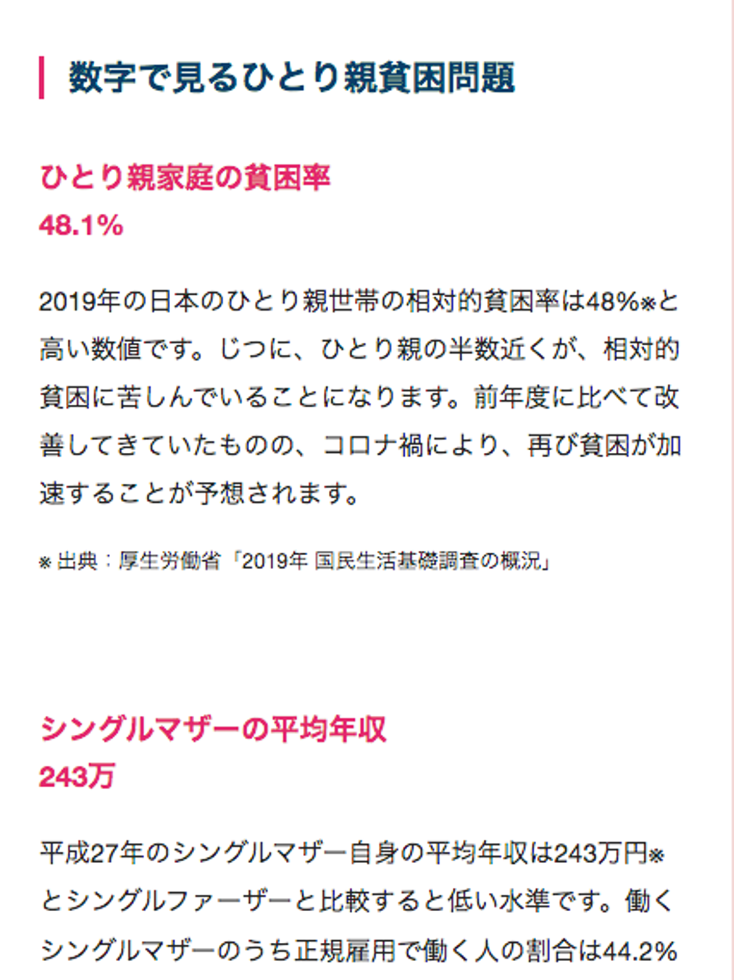 さらに、フローレンスが取り組む社会課題についての情報も掲載されており、知る機会の少ない社会が抱える問題について見識を深めるきっかけにもなります。