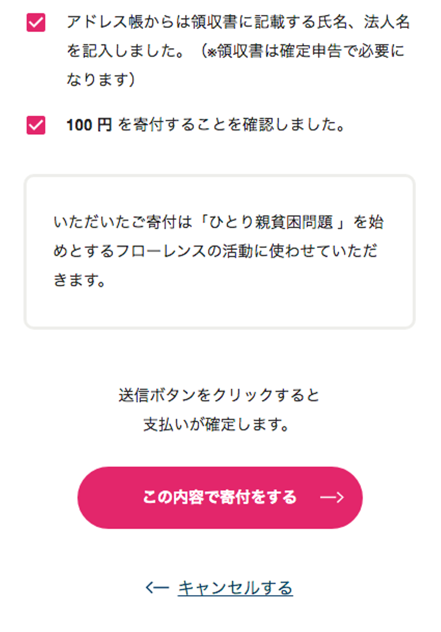 ここまでにかかった時間は早ければ数十秒、長くかかっても数分程度です。驚くほど簡単に寄付ができるので、これまで寄付は難しそうだなと思っていた方にこそチャレンジしてもらいたいと感じました。