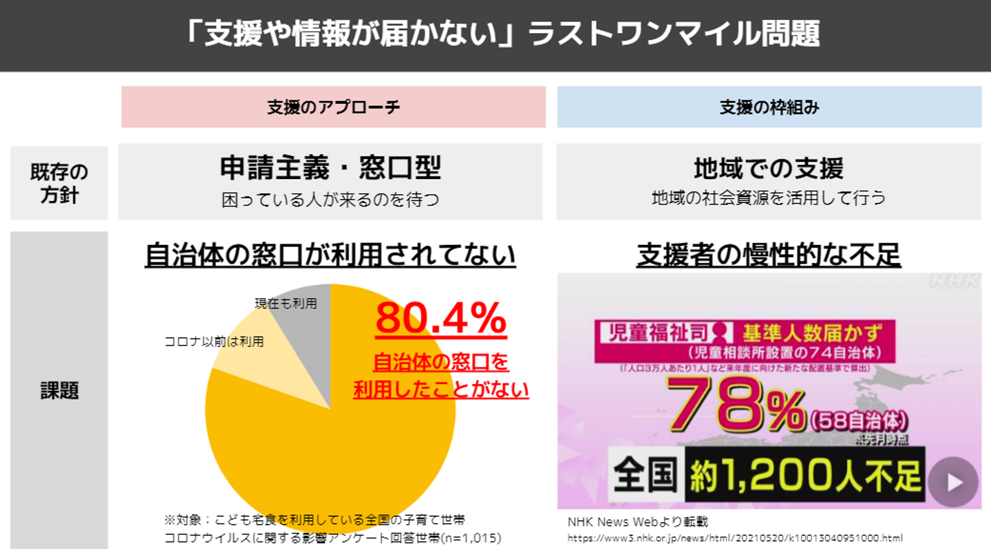 親子を取り巻く社会課題として、支援や情報が必要な人に届かない「ラストワンマイル問題」をご存知でしょうか?