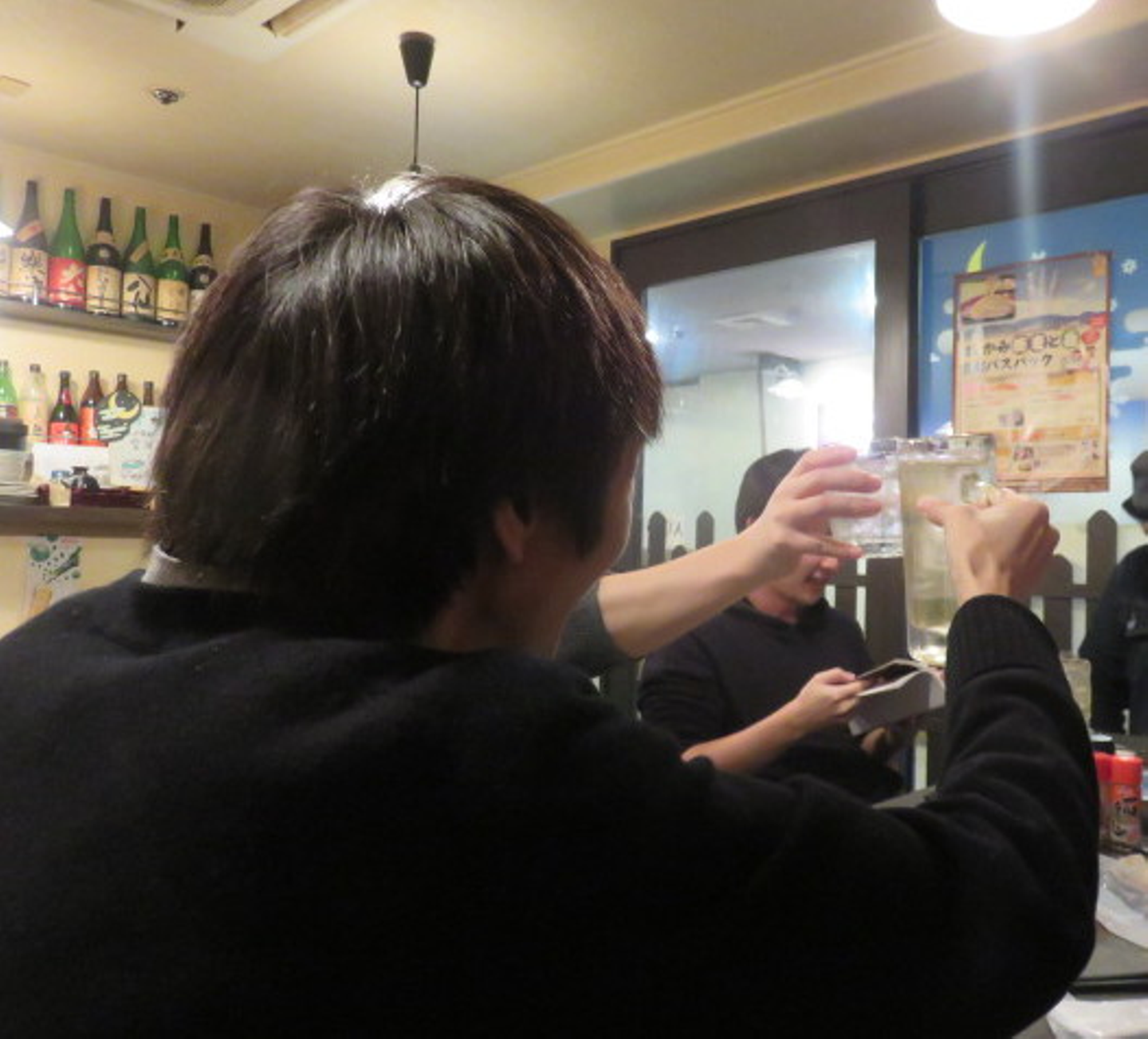 酒は人間関係の潤滑油と言わんばかりに飲む原氏。