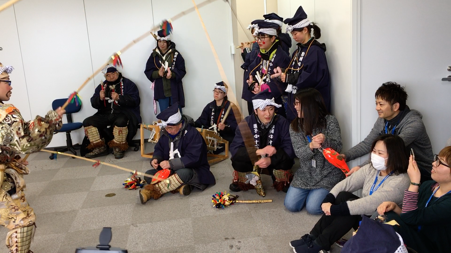 今年はTRUEGIOの「豊作祈願」のため、「十一日町えんぶり組」の皆様が来社してくれました。