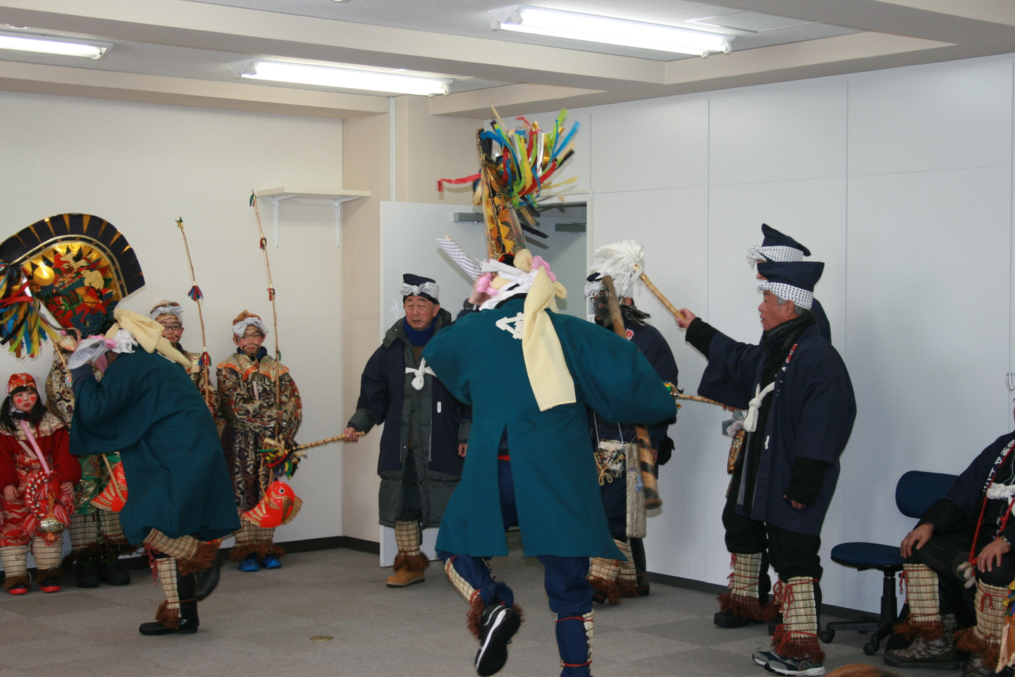 お囃子の音とともに、烏帽子をかぶった太夫の迫力あるえんぶり舞や