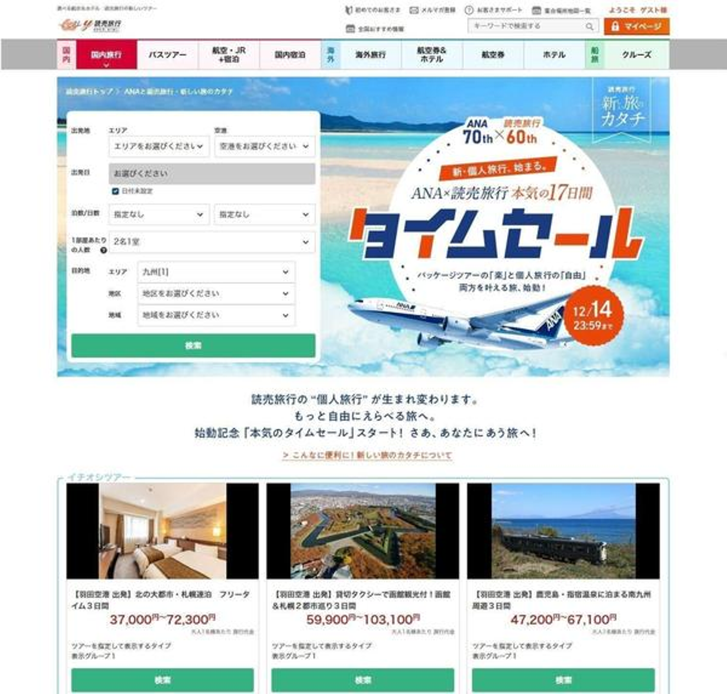(読売旅行 オンライン予約サイト 画面イメージ)