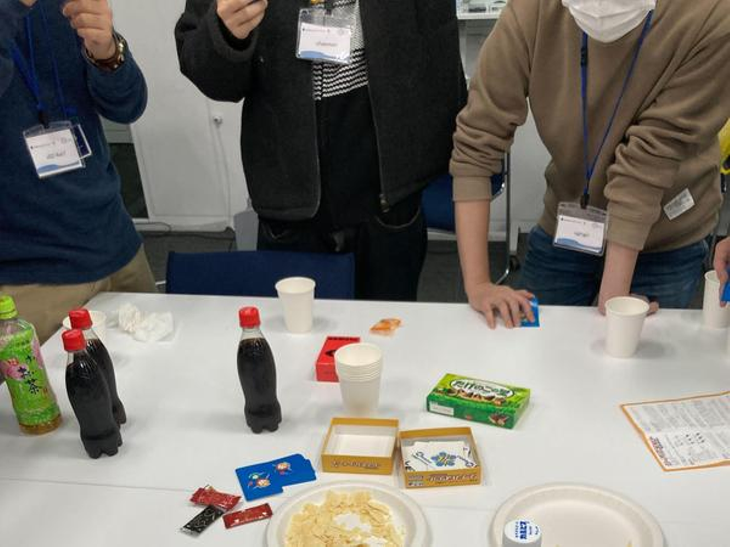 (お菓子で懇親しながらボードゲームで遊ぶ様子)