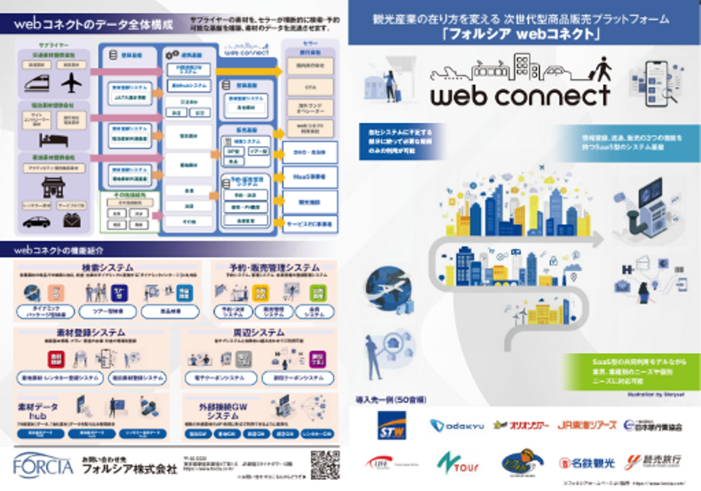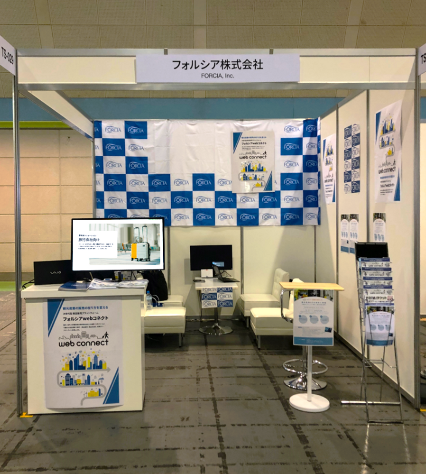 今回、フォルシアがメインでPRするのは、自社SaaSプロダクトの「フォルシアwebコネクト」です。今回、このツーリズムEXPOのために、パンフレットを新たに作りそのPRに臨みました。