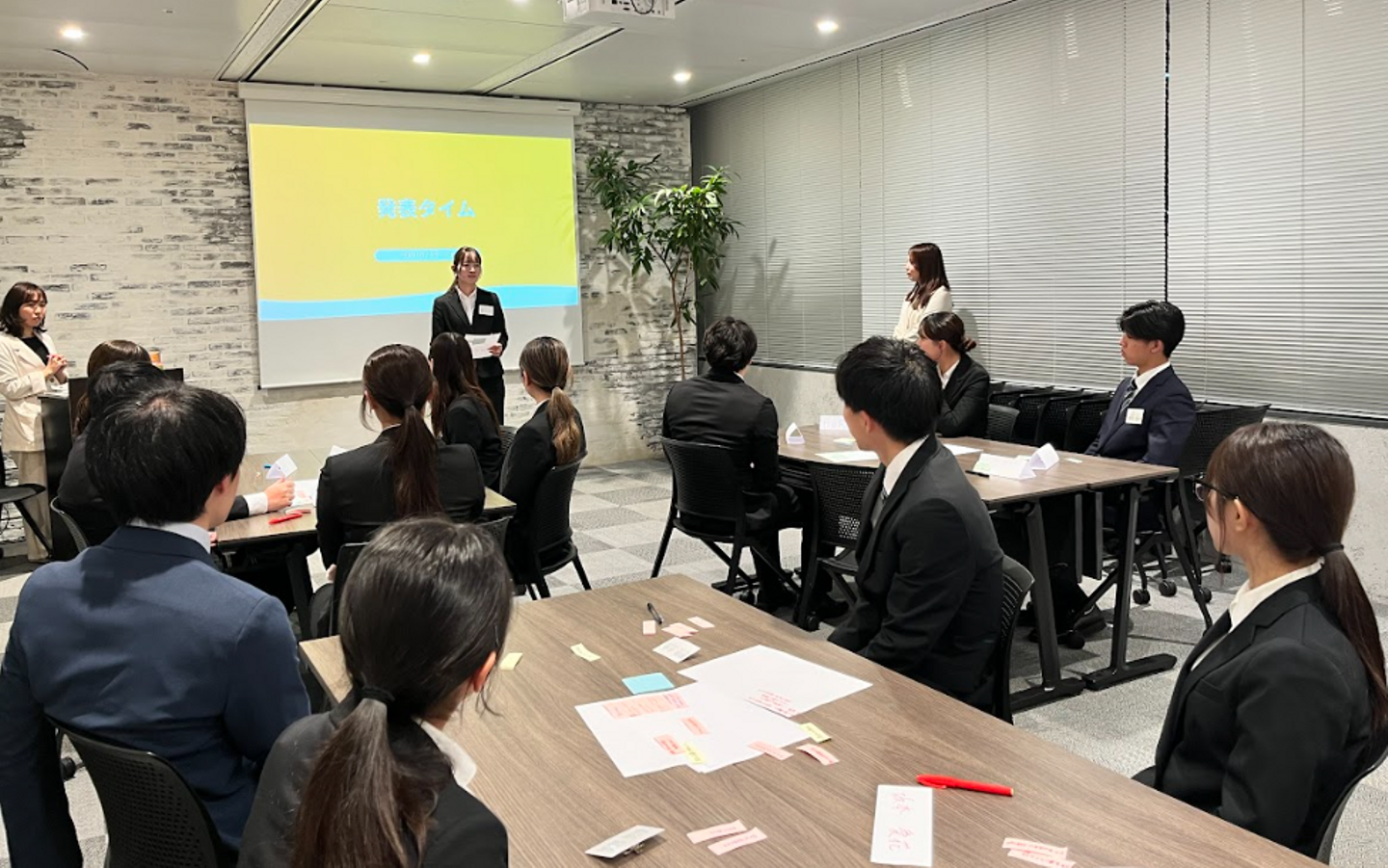 グループワークでは各社の魅力について書き出し、話し合いを通じて共通点を見つけ、具体的な理由を含めて発表まで行いました。