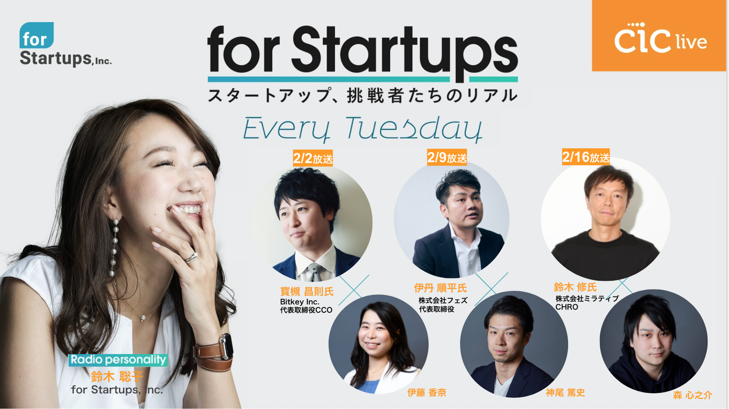 フォースタートアップス、オンラインラジオ配信「CIC LIVE」本格始動! 番組「for Startups - スタートアップ、挑戦者たちのリアル」 | for Startups, Inc. - 成長産業支援におけるリーディングカンパニー