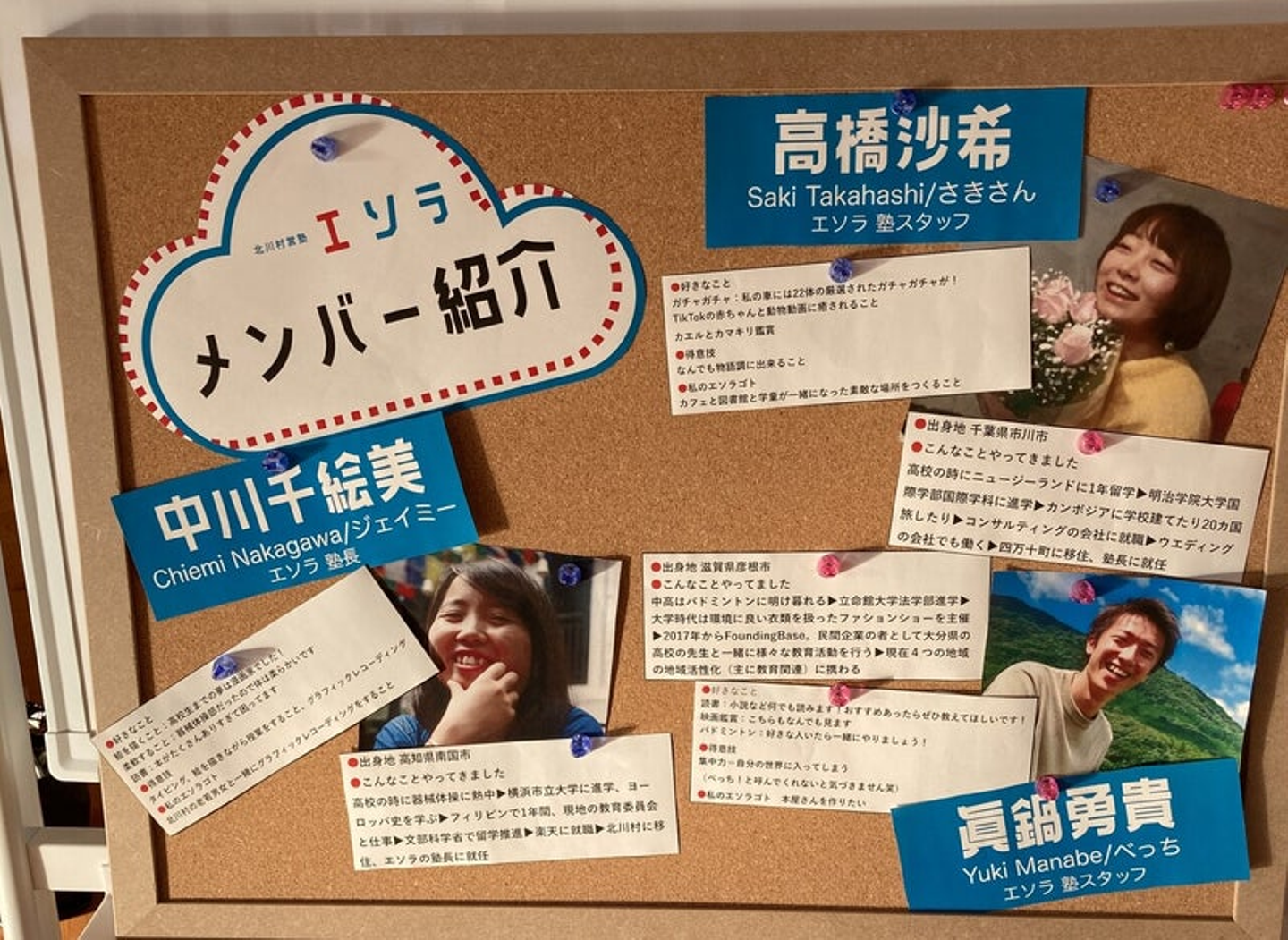 ▲教室に置いてある自己紹介ボード。些細なところから教室の雰囲気作りにもこだわっています。