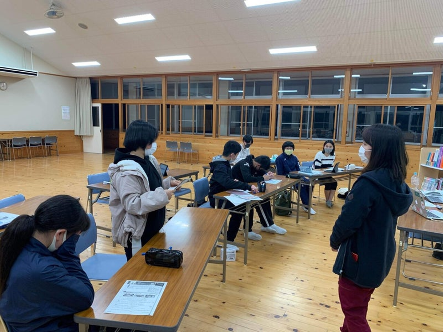 ▲フミダス!スタディーのメンターと話す生徒たち。