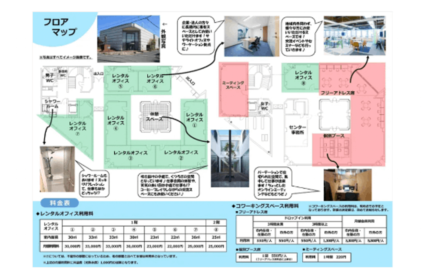 正式オープン:5月7日(土)利用料金: 市内在住 市外在住3時間未満 330円 550円3時間以上 550円 1,100円月額会員 3,300円 5,500円営業時間:午前9時〜午後9時(年末年始を除く)設備:エアコン、wifi、AC電源完備、個別ブース席もあり共用部分にはプロジェクターやウェブカメラ、シャワー(有料)ありお問合せ先:クロスワークセンターMIYAZU運営責任者 筒井章太miyazu@foundingbase.jp